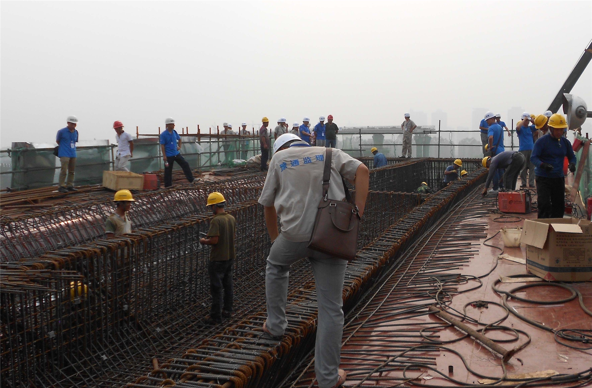 會(huì)議分現(xiàn)場(chǎng)觀摩和內(nèi)部總結(jié)兩部分進(jìn)行。會(huì)議伊始,由本工程項(xiàng)目總監(jiān)理工程師張永福同志帶領(lǐng)參會(huì)人員對(duì)現(xiàn)場(chǎng)的施工規(guī)模、重難點(diǎn)及工程質(zhì)量、安全文明施工等進(jìn)行詳細(xì)介紹,各位就現(xiàn)場(chǎng)各種問題進(jìn)行交流學(xué)習(xí)。